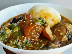 Sauce Gombo viande/morue fumée